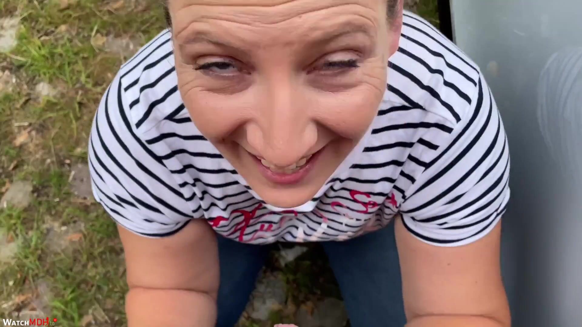 Mr. Grey und ich waren mal wieder Public unterwegs! Wir beide lieben diesen Kick, eventuell erwischt oder gesehen zu werden. Was bietet sich da besser an, direkt an der Landstraße einen entspannten Blowjob zu bekommen oder? Gesagt getan, Hose runter, Schwanz in den Mund und schön blasen, schön tief, ja das mag ich! Stehst du da auch so drauf? Schön die Ficksahne ins Maul spritzen… oh ja, das ist geil!