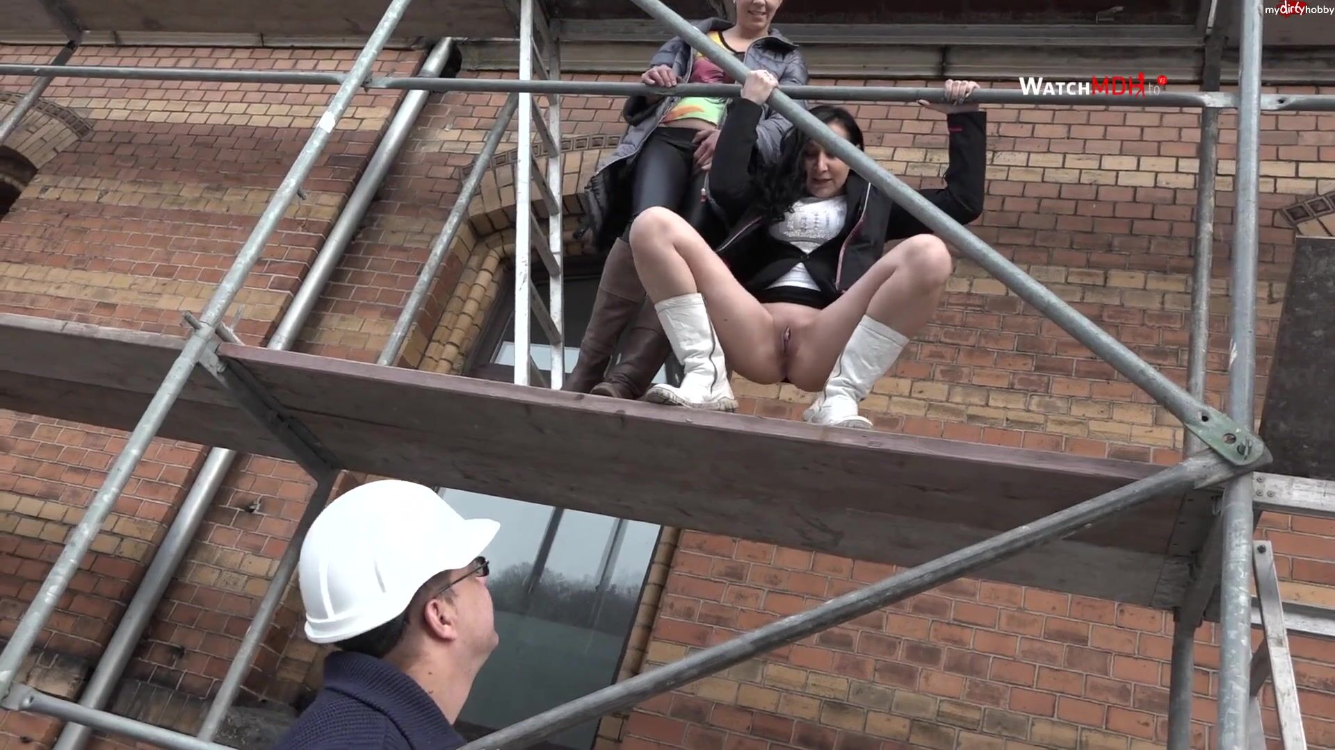 Meine Freundin und ich haben der Bauaufsicht mal so richtig geil und viel auf den Kopf gepisst
