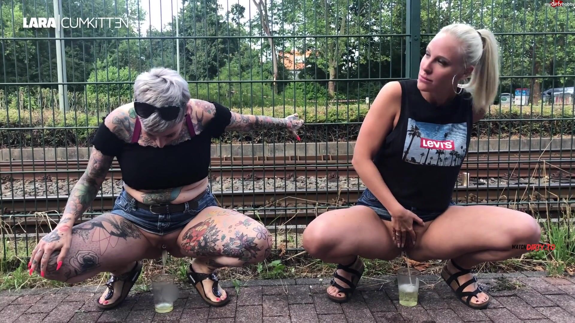 SPANNENDE PUBLIC PISS CHALLENGE Bei wem sprudelt der Becher über mit Lara-CumKitten